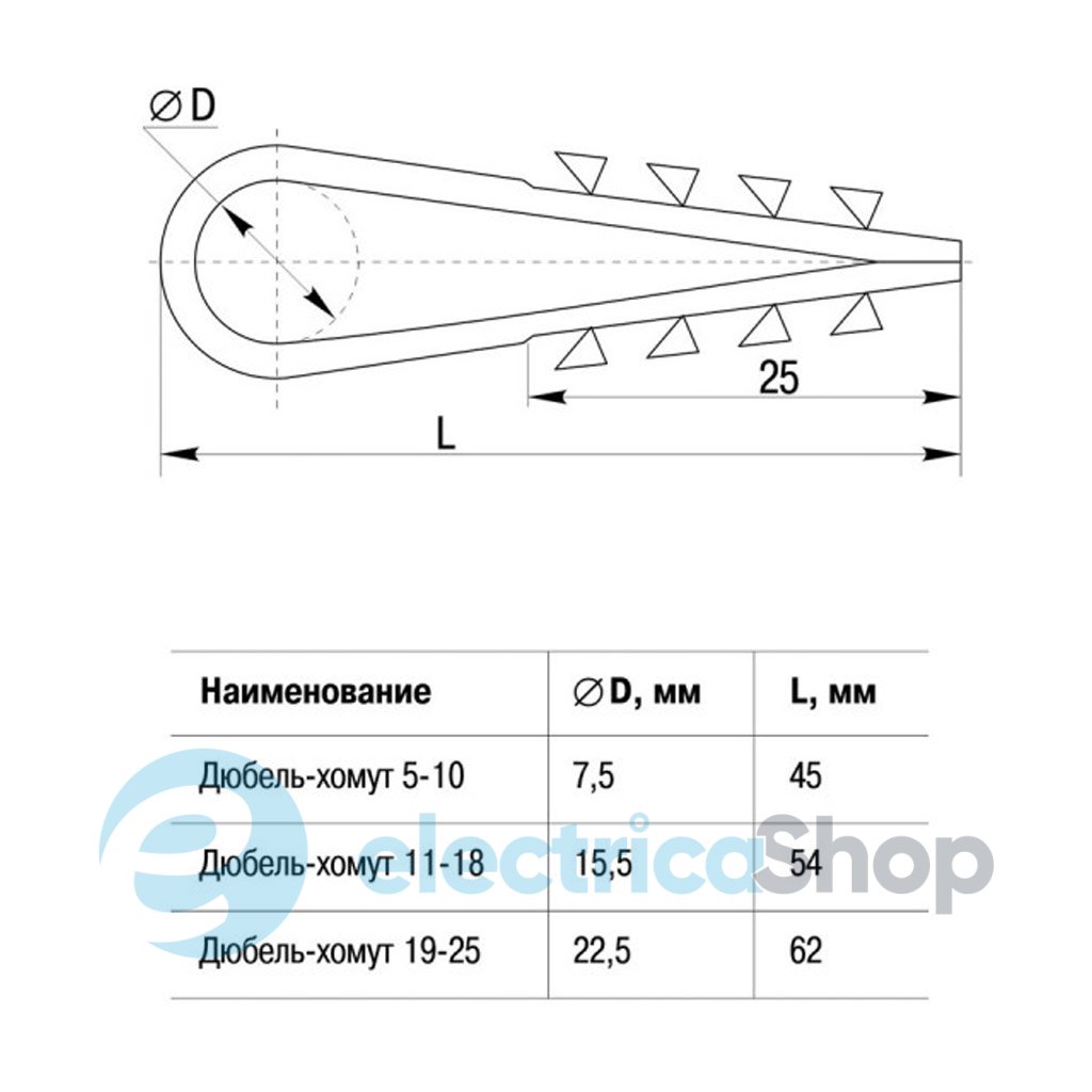 – Кількість в пакуванні: 100шт.Загальний опис дюбель-хомута UEK
