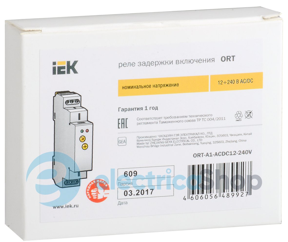 – Тип: Реле ввімкнення ORT. 1 конт. 12-240 В AС/DC UEK