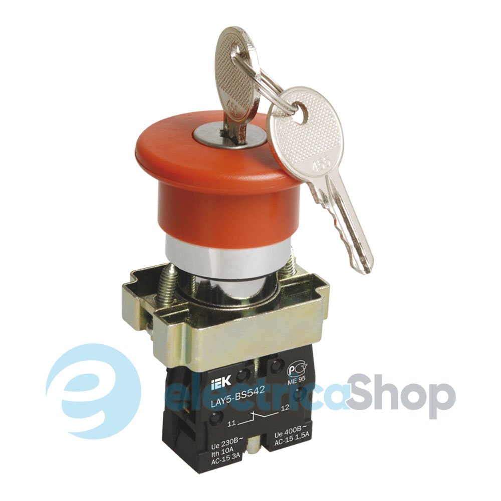 – Тип: Кнопка управління LAY5-BS142 "Грибок" з ключем червона d22мм 240В 1р UEK