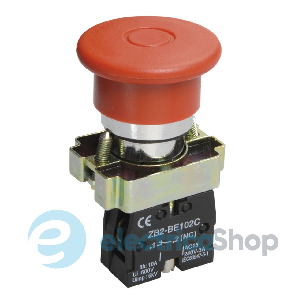 - Особливості клавіши: З фіксацією, Аварійна, Монтажний діаметр Ø 22