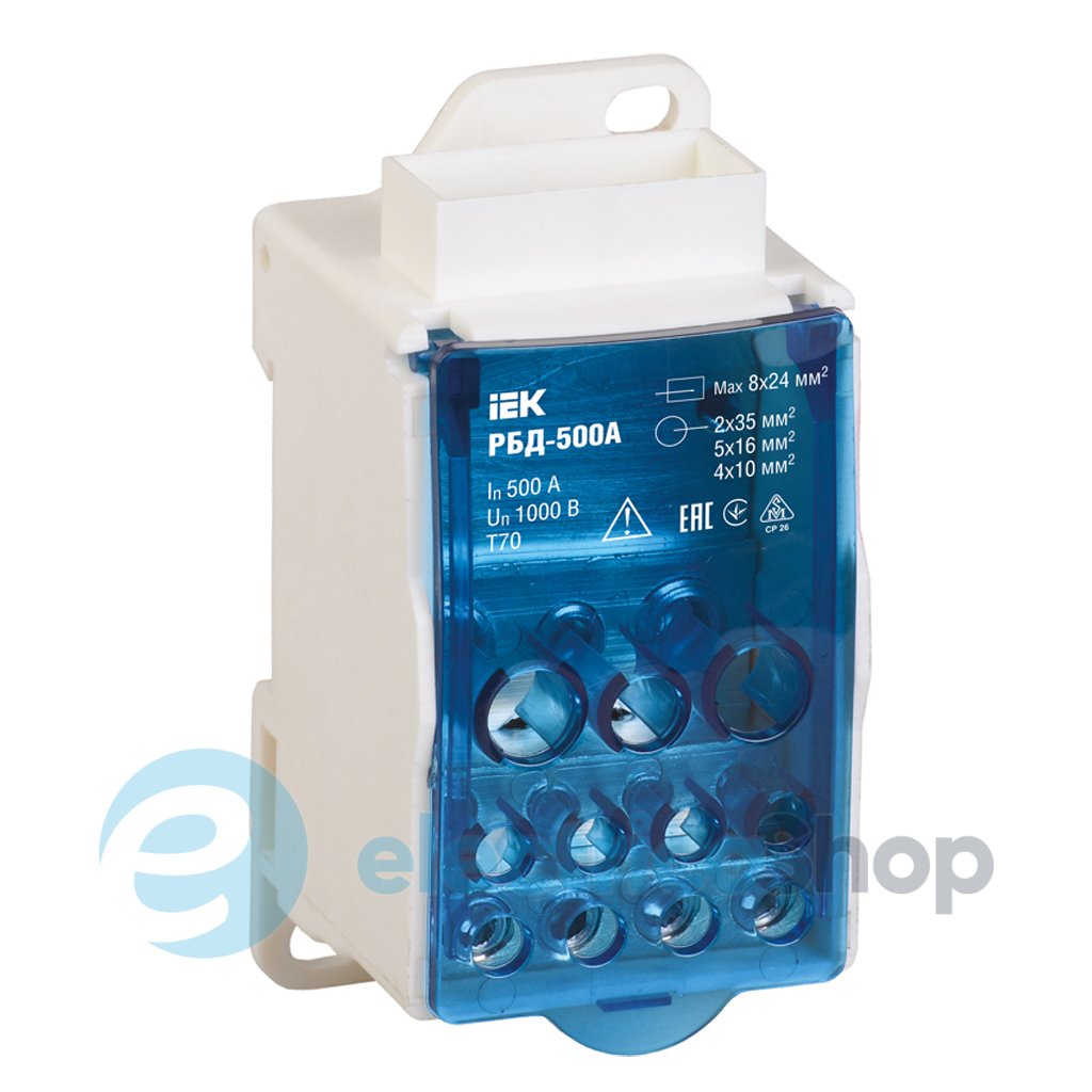 Розподільчий блок RBD-500 UEK призначений для використання в якості клемного затиску при підключенні до провідника більшого перерізу декількох провідників меншого перерізу, для створення впорядкованих систем розподілу в шафах, для організації головної заземлювальної шини.