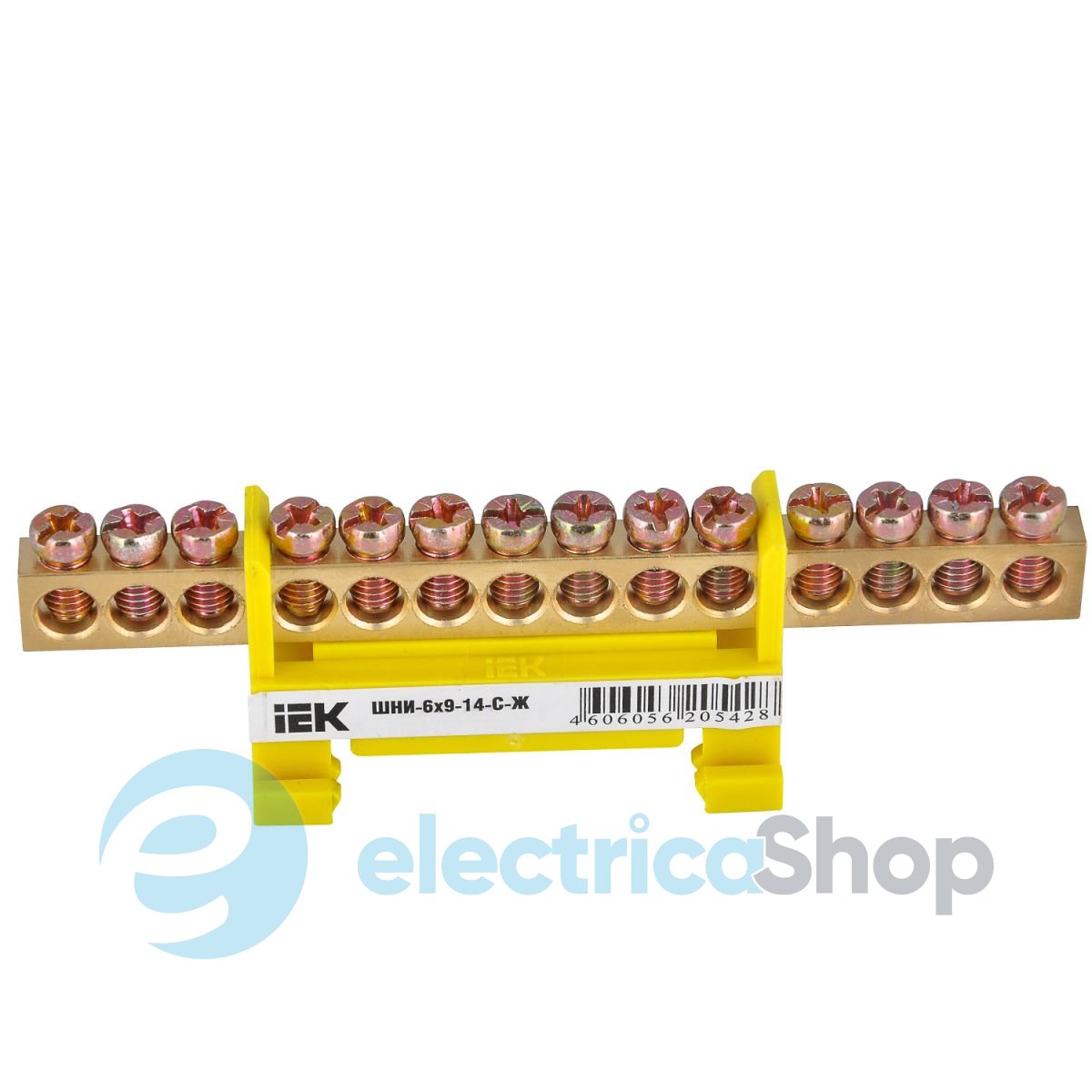 Шина з ізолятором ШНИ-6х9-14-С-Ж від UEK призначена для електричного та механічного з'єднання нульових, захисних і фазних провідників.