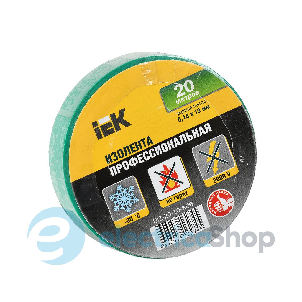 Ізоляційна стрічка від UEK на 20 м випускається в зеленому кольорі, призначена для промислових й будівельних робіт, електроізоляції. Виготовлена ??на основі полівінілхлориду.