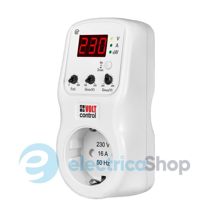 Реле напруги РН-122 Novatek в розетку, 16А, 220В, індикація, (кнопкове керування)