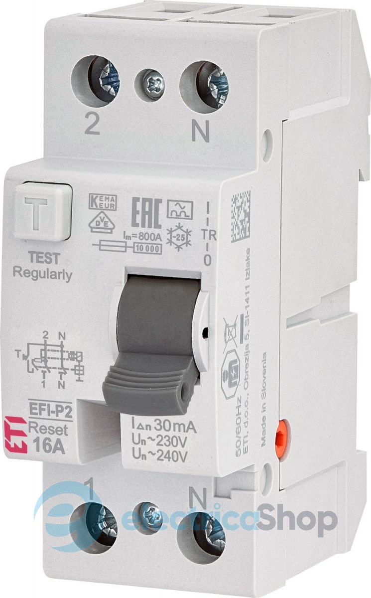 Диференційне реле EFI має функцію RESET, що переводить руків'я пристрою в середнє положення, тим самим візуально інформуючи, що відключення пристрою походить від захисних функцій. Застосовується з метою захисту від ураження електричним струмом при прямих або непрямих дотиках до струмопровідних частин, а також до частин, які можуть опинитися під напругою в результаті пошкодження ізоляції; для захисту обладнання від можливого виникнення пожежі.