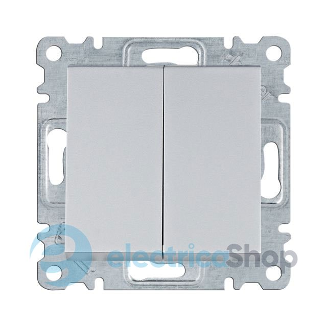 Однополюсний (2-клавішний) вимикач із серії ЕУВ Lumina виробництва Hager, призначений для включення / відключення двох джерела світла з одного місця.