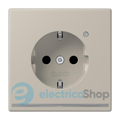 Електрична розетка із заземлюючим контактом в дизайні JUNG LS990 поставляється з вбудованим датчиком освітленості і має орієнтаційне світлодіодне підсвічування.