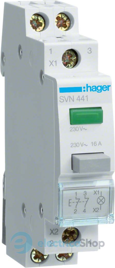Кнопка керування 2НЗ 16А/230V (без фіксації) Hager SVN441 з індикацією