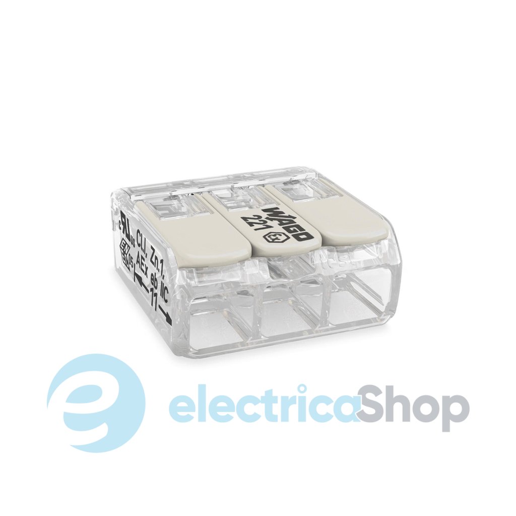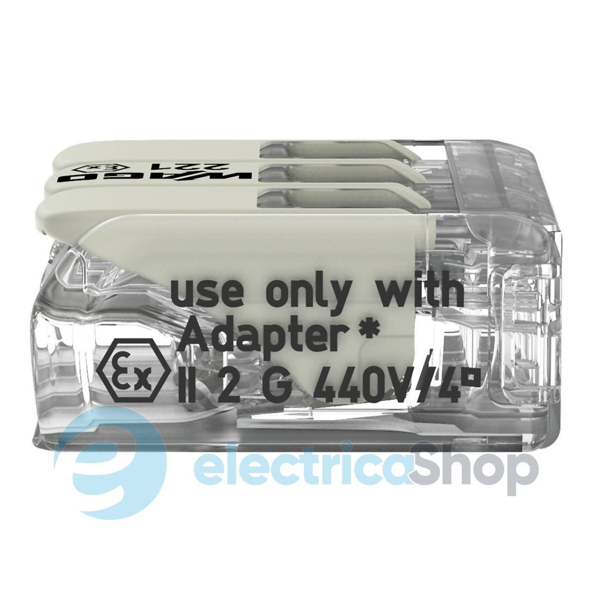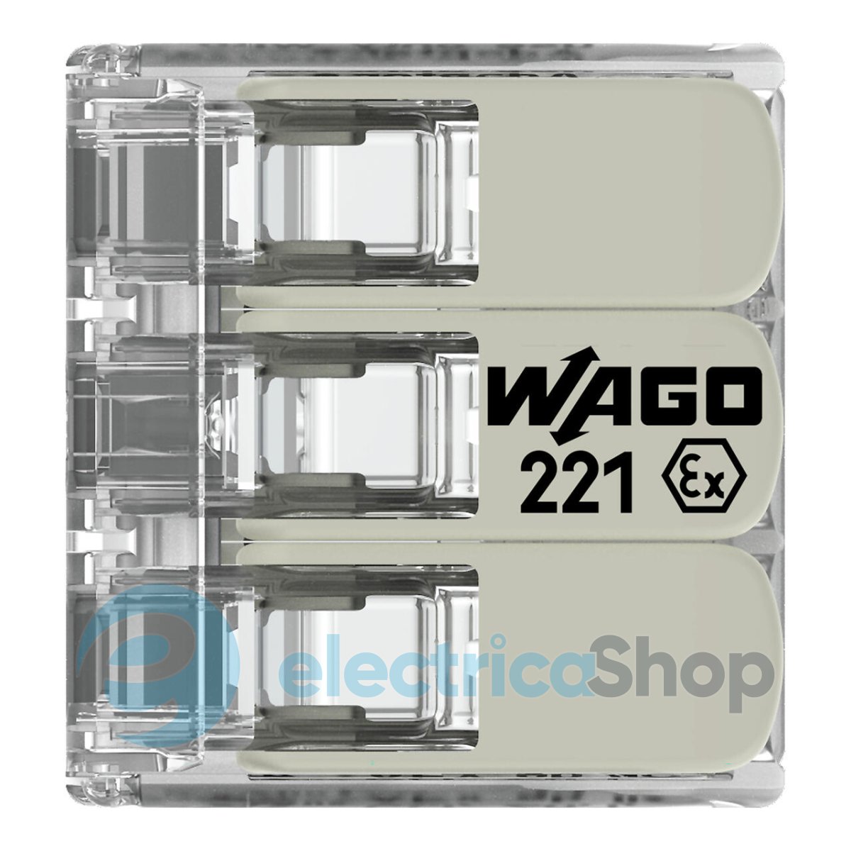 Колір: прозорий корпус з світло-сірими важелями.Використання клеми 221-483 Wago