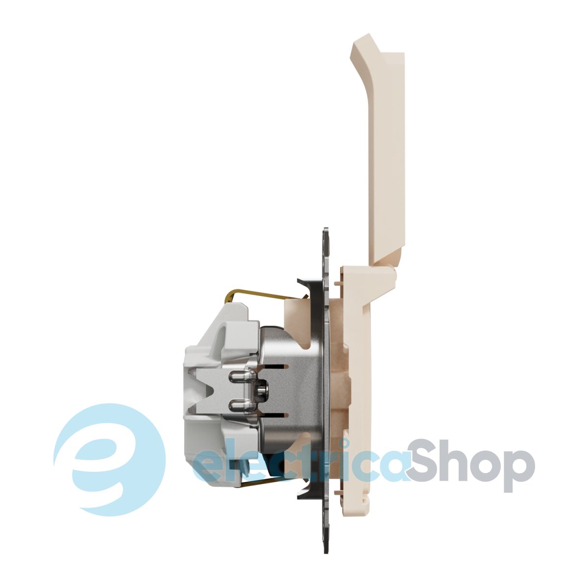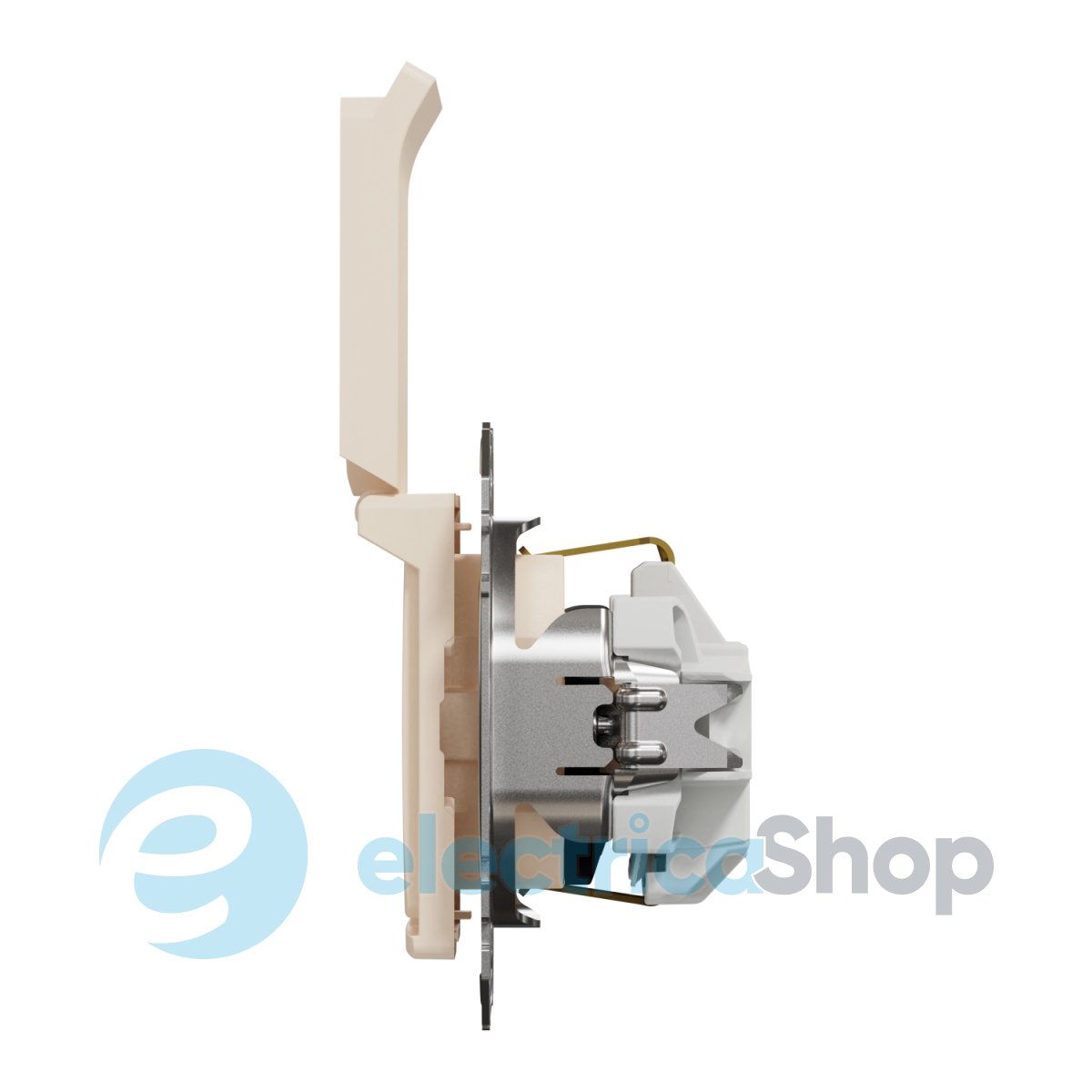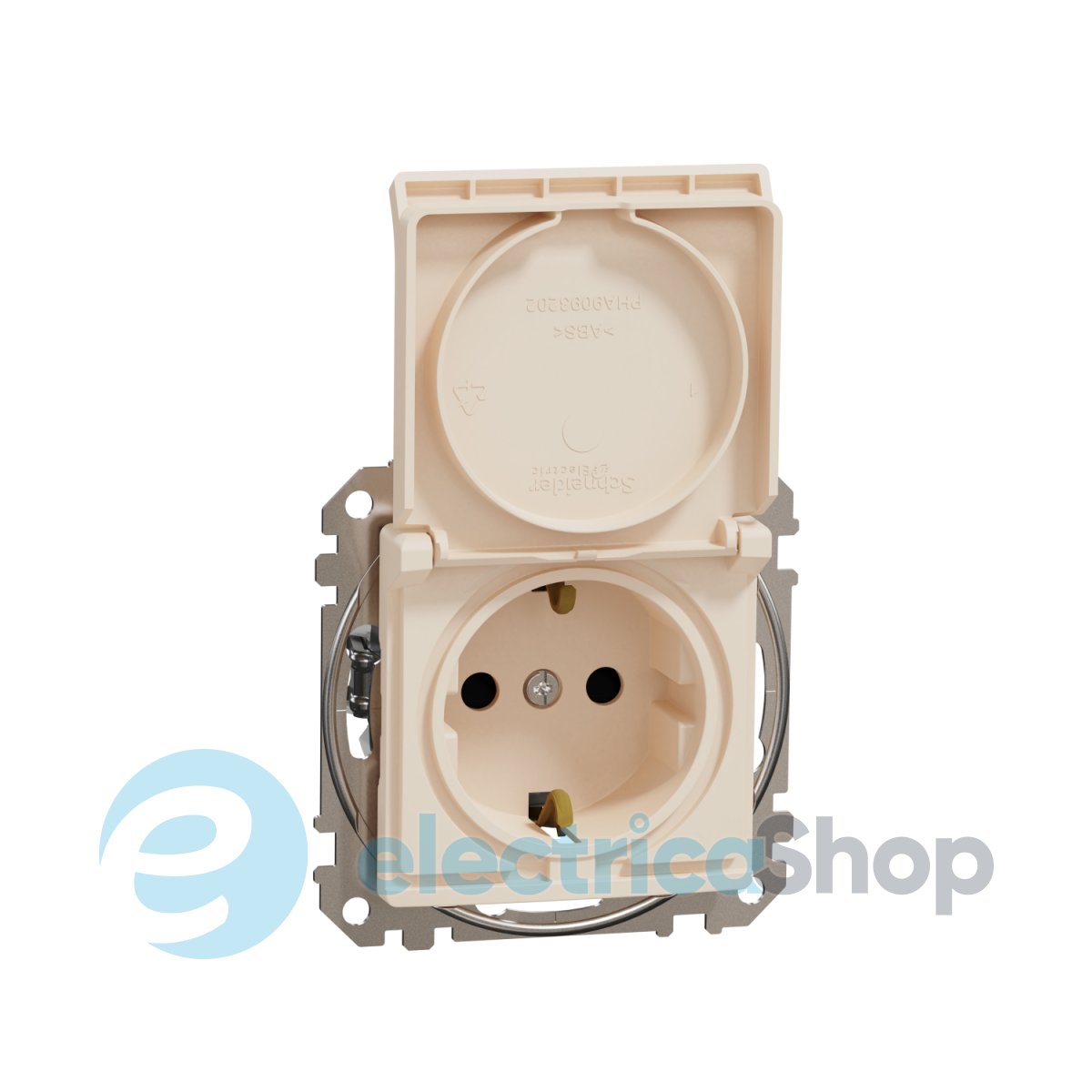 Ця розетка SDD112024 виготовлена з PC матеріалу та має глянсову поверхню бежевого кольору, оснащена бризкозахисною кришкою та ідеально підходить для встановлення у санвузли, ванні кімнати та інші вологі приміщення.
