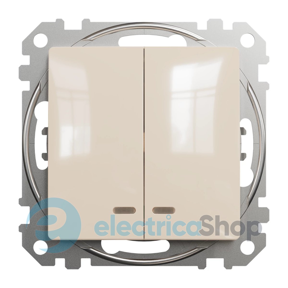 Вимикач з підсвіткою 2-клавішний SE Sedna Design SDD112105L у бежевому кольорі як і вся серія вимикачів та розеток Sedna Design & Elements у повному асортименті представлена у шоу-румах «Електрика-шоп» у місті Києві. Перед візитом рекомендуємо уточнити наявність товару, що цікавить. Ласкаво просимо до наших виставкових залів для ознайомлення з цією популярною серією.