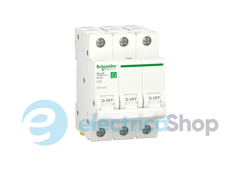 Автоматичний вимикач 3-полюсний серії Resi9 (Schneider Electric) – захисний апарат у модульному виконанні призначений для автоматичного відключення при короткому замиканні і теплового перевантаження на захищеній лінії.