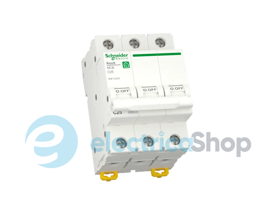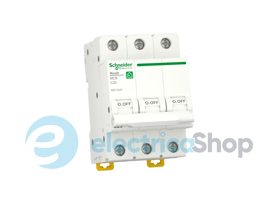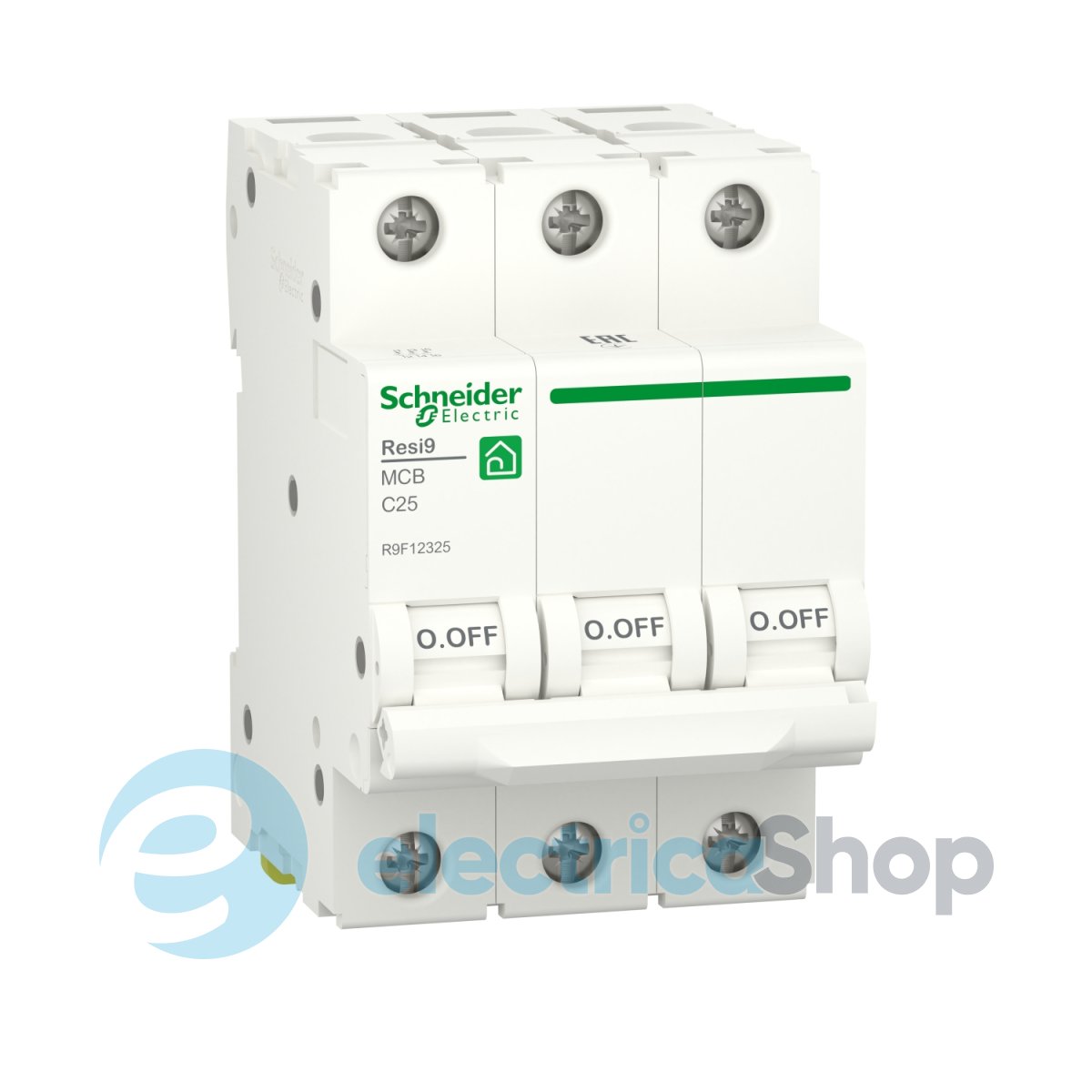 Автоматичний вимикач 3-полюсний серії Resi9 (Schneider Electric) – захисний апарат у модульному виконанні призначений для автоматичного відключення при короткому замиканні і теплового перевантаження на захищеній лінії.