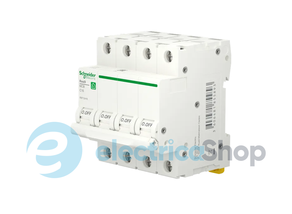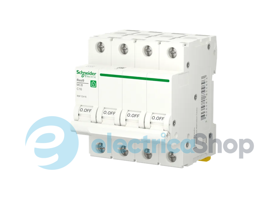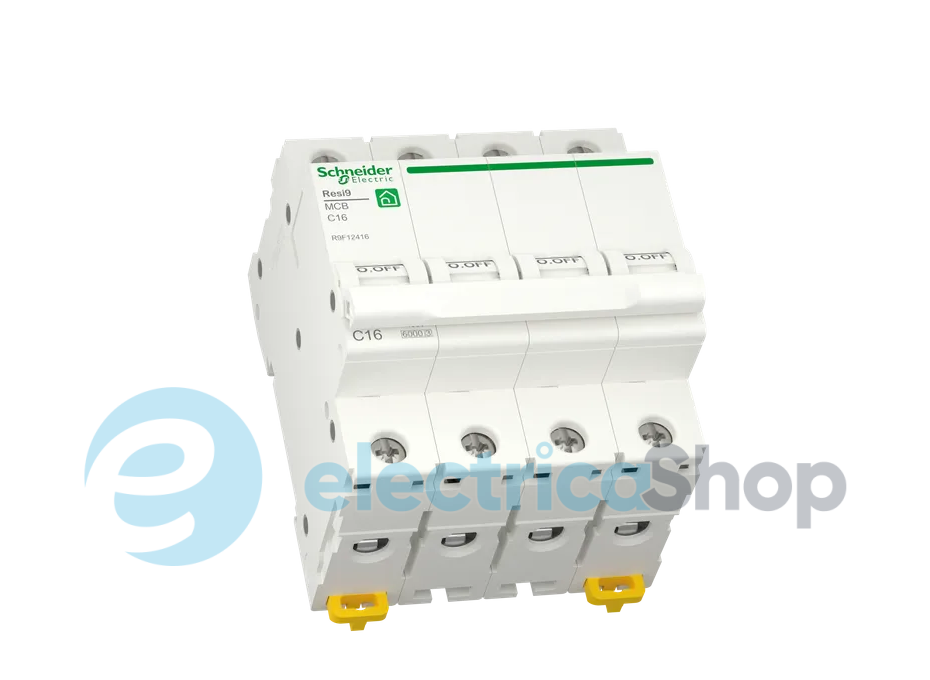 Автоматичний вимикач 4-полюсний серії Resi9 (Schneider Electric) – захисний апарат у модульному виконанні призначений для автоматичного відключення при короткому замиканні і теплового перевантаження на захищеній лінії.