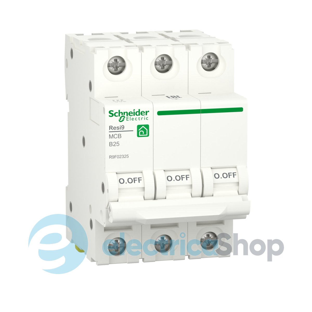 Автоматичний вимикач 3-полюсний серії Resi9 (Schneider Electric) – захисний апарат у модульному виконанні призначений для автоматичного відключення при короткому замиканні і теплового перевантаження на захищеній лінії.