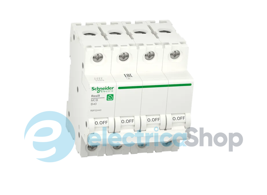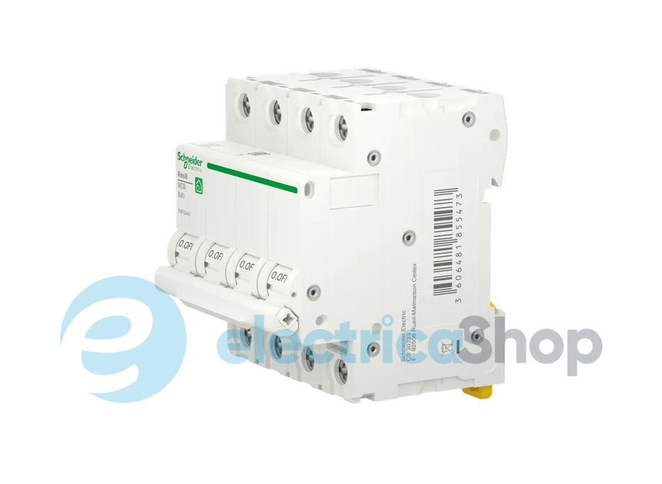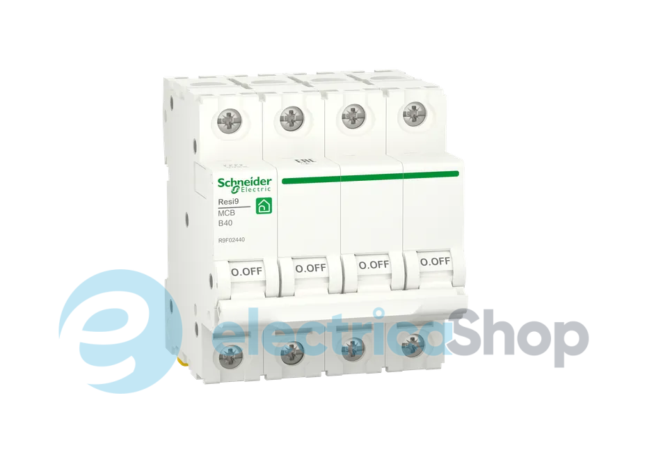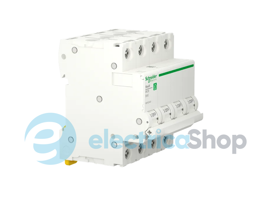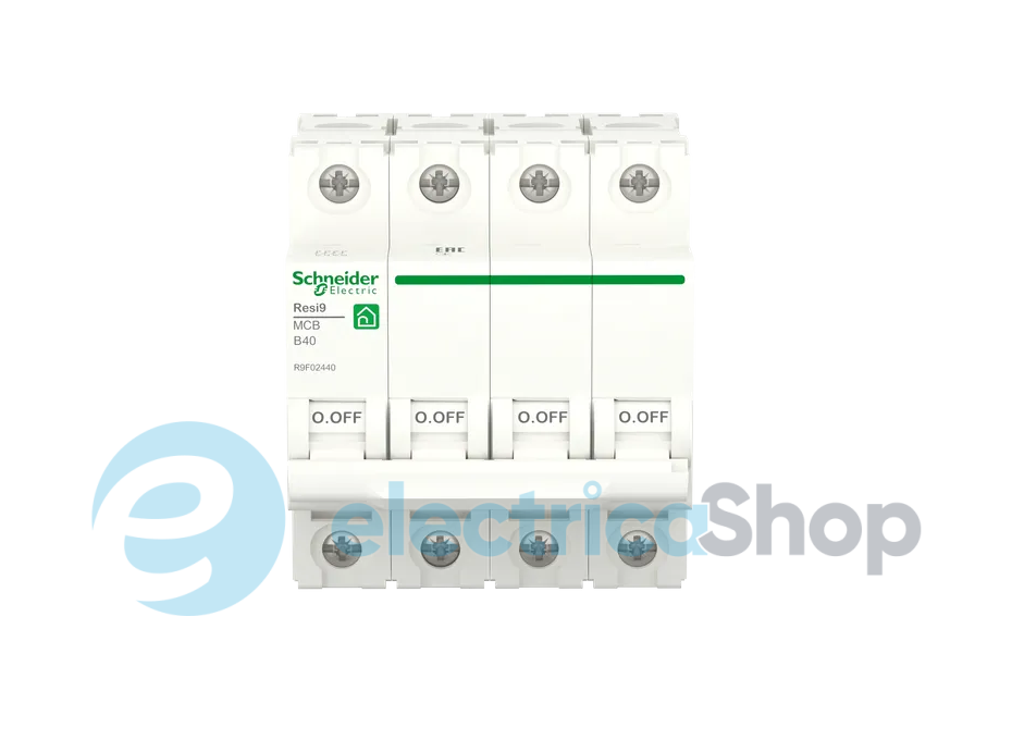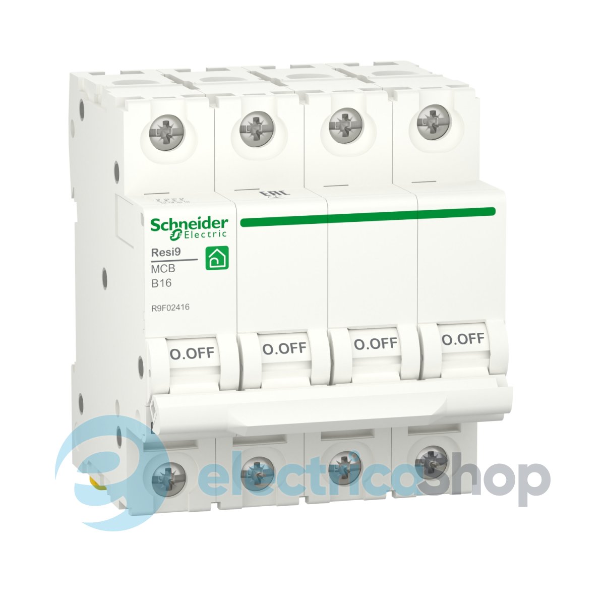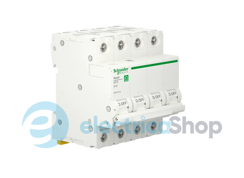 Автоматичний вимикач 4-полюсний серії Resi9 (Schneider Electric) – захисний апарат у модульному виконанні призначений для автоматичного відключення при короткому замиканні і теплового перевантаження на захищеній лінії.