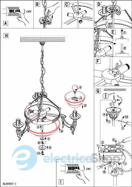 Люстра EGLO 85857 Marbella з традиційної колекції Егло добре підійде для інтер'єрів в класичному стилі. Арматура виготовлена з литого металу, а плафони - зі скла.