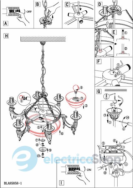 Люстра EGLO 85858 Marbella з традиційної колекції Егло добре підійде для інтер'єрів в класичному стилі. Арматура виготовлена з литого металу, а плафони - зі скла.