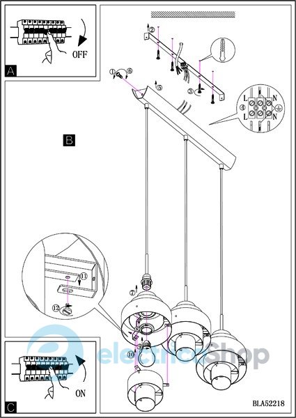 - Кількість ламп, шт: 3