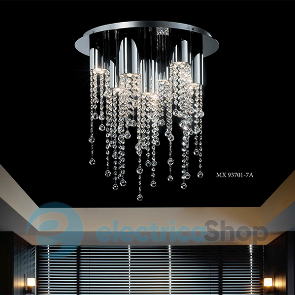 Кришталева люстра Illuminati MX93701-7A Perline стане справжньою окрасою приміщень, оформлених в стилі арт-деко. Такий освітлювальний прилад буде добре виглядати в спальні, вітальні, їдальні. Виготовлена з хромованого металу і кришталю Asfour.