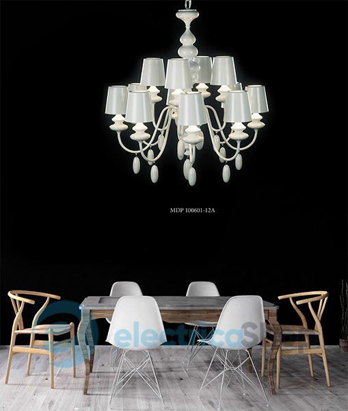 Стильна люстра Illuminati MDP100601-12A Paradiso буде добре виглядати в спальні, вітальні, їдальні, великих залах та інших сучасних інтер'єрах. Така ідеально біла глянцева люстра має дуже плавні, досконалі форми, повністю виготовлена з металу і покрита емаллю.