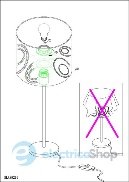 - Вид плафона: Абажур, Декор