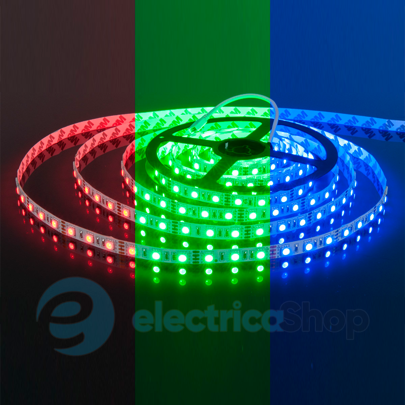 Яскравість метра, Lm Робоча напруга Сила струму кількість світлодіодів в метрі Кут світіння Розміри S5050-300RGB RGB