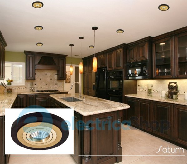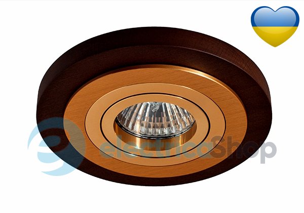 Дерев'яний точковий вбудований світильник ImperiumLight для стель кольору "горіх" з алюмінієвою вставкою alu gold.