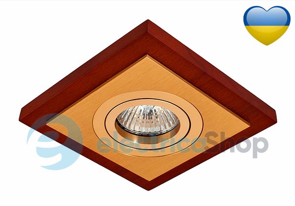 Дерев'яний точковий вбудований світильник ImperiumLight для стель кольору "вишня" з алюмінієвою вставкою alu gold.