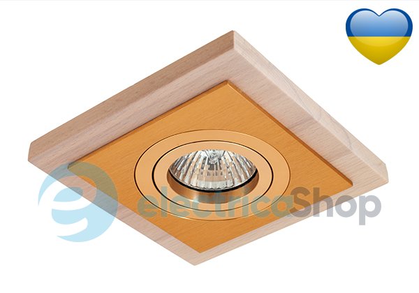 Дерев'яний точковий вбудований світильник ImperiumLight для стель кольору "освітлений дуб" з алюмінієвою вставкою alu gold.
