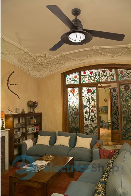 Стельовий вентилятор ідеально підходить для кімнат 17,6m2. Двигун виготовлений зі сталі, лопаті з фанери. Плафон з білого скла. Лампочки Е27 - 20 W не входять в комплект. Рекомендується використовувати енергозберігаючі лампочки. Люстра-вентилятор має 3 швидкості із споживанням 15-30-60W и 90-145-190 обертів на хвилину. Цей сучасний вентилятор має два режими-зима, літо. Вага вентилятора - 6,88 кг. Гарантія на двигун - 15 років. Вентилятор можна встановлювати на пряму стелю, а також на звід, кут якого не перевищує 30 °.