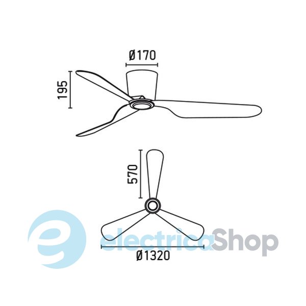 Стельовий вентилятор ідеально підходить для кімнат 13m2. Двигун виготовлений зі сталі, лопаті з акрилу. Вентилятор має 6 регульованих швидкостей із споживанням 2-7-9-14-21-32W и 50-76-99-127-151-175 обертів на хвилину. Цей сучасний вентилятор має два режими-зима, літо. Вага вентилятора - 5,5 кг. Гарантія на двигун - 15 років. Вентилятор можна встановлювати тільки на пряму стелю.