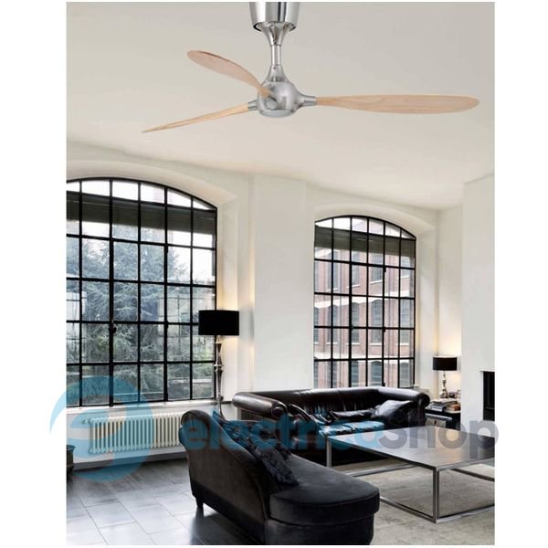 Стельовий вентилятор ідеально підходить для кімнат до 17,6m2. Двигун виготовлений зі сталі, лопаті з дерева. Вентилятор має 6 регульованих швидкостей із споживанням 3-5-8-13-21-32W и 50-80-110-140-170-203 обертів на хвилину. Цей сучасний вентилятор має два режими-зима, літо. Вага вентилятора - 7 кг. Гарантія на двигун - 15 років. Вентилятор можна встановлювати тільки на пряму стелю.