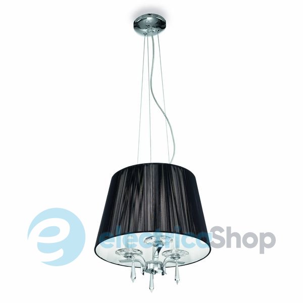 Люстра Ideal Lux 26022 ACCADEMY прекрасно буде виглядати в сучасних інтер'єрах. Основа виготовлена з хромованого металу, плафони з пластику, обтягнутого чорними нитками.