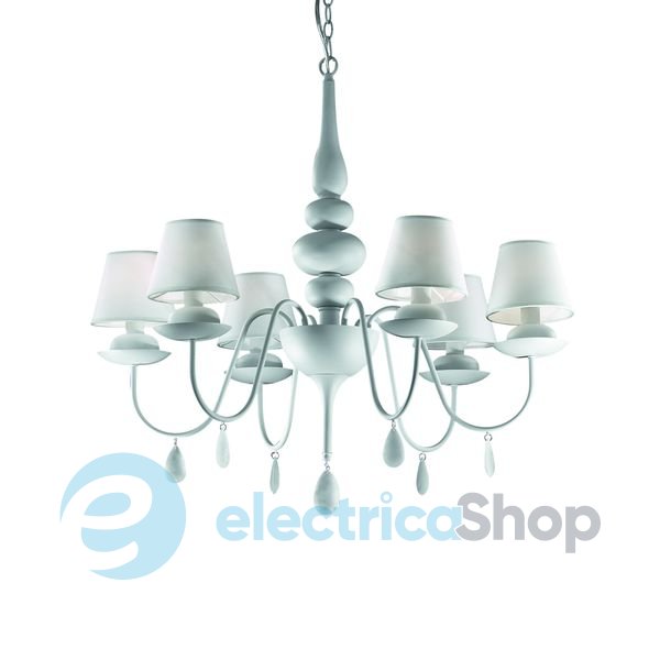 Люстра Ideal Lux 35581 BLANCHE BIANCO добре впишеться в інтер'єр в стилі модерн. Плафони виготовлені з ПВХ та білої тканини, арматура - з металу.