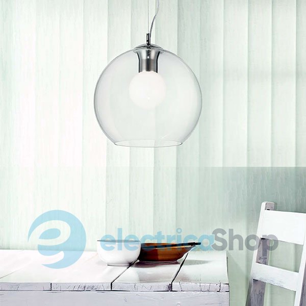 Люстра Ideal Lux 52816 NEMO CLEAR - чудове рішення для інтер'єру в стилі "модерн". Арматура виготовлена з хромованого металу. Плафон люстри - це прозоре дуте скло. Лампочка прихована під білим дутим окисленим склом.