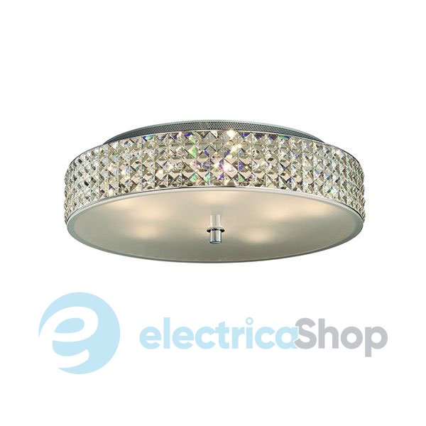 Люстра Ideal Lux 87863 ROMA гарно виглядатиме в інтер'єрах в стилі модерн. Розсіювач складається з кришталевих елементів квадратної форми з фацетом на боковій частині (нижнє скло піскоструминної обробки). Арматура та деталі люстри виготовлені з хромованого металу.