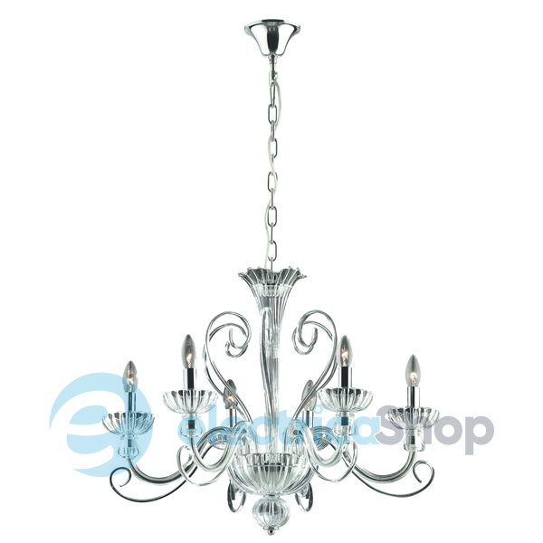 Люстра Ideal Lux 90252 ALEXANDER - чудове рішення для інтер'єру в стилі "класика". Елементи і арматура освітлювального приладу виготовлені з хромованого металу. Сама ж люстра - це дуте прозоре скло ручної роботи.