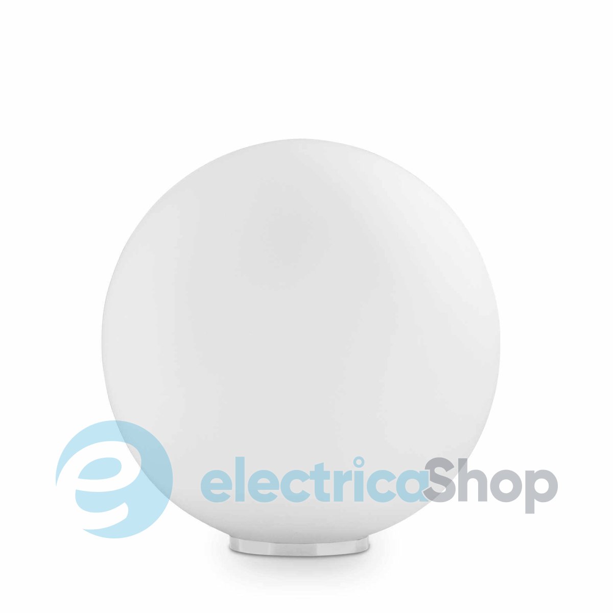 Стильна настільна лампа Ideal Lux 206 MAPA Bianco - відмінне рішення для інтер'єрів в сучасному стилі. Плафон виготовлений з білого дутого скла, а арматура - з металу.