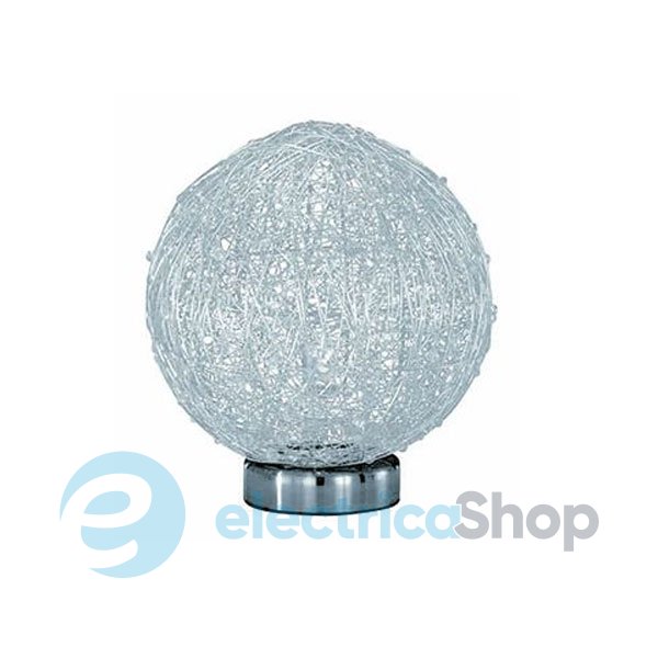 Настільна лампа Ideal Lux 13756 підійде для інтер'єрів в сучасному стилі. Основа виготовлена з металу з нікелевим покриттям. Плафон з алюмінієвих ниток, зібраних у вигляді кулі. Лампочка G9 28W в комплекті.