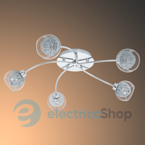 Люстра 93055 Eglo OVIEDO з трендової колекції буде гарно виглядати в сучасних інтер'єрах. Корпус освітлювального приладу виготовлений з хромованого металу, а плафон - зі скла (всередині декор у вигляді кулі з алюмінієвих ниток. Лампочка в комплекті.