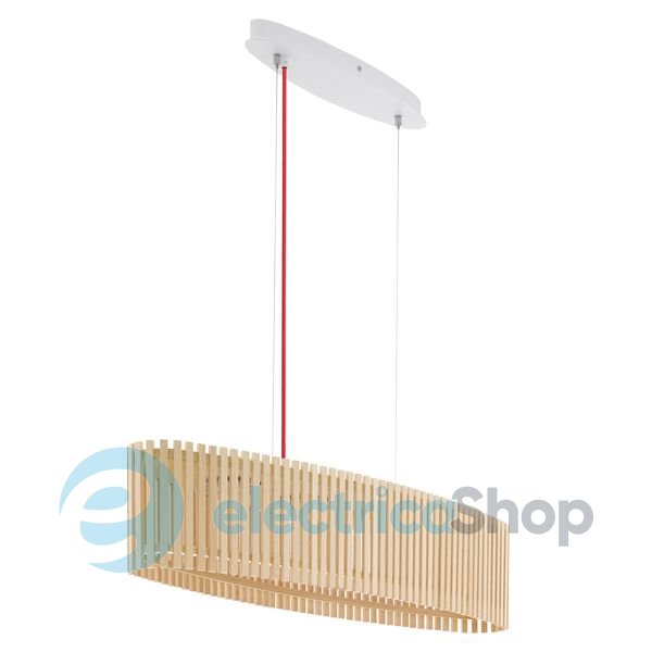 Люстра-Підвіс Eglo 94025 ROVERATO - чудове рішення для інтєр'єрі в стилі модерн. Корпус освітлювального приладу виготовлений зі сталі та пофарбований в білий колір, а плафон - з дерева та пластика кольору натурального дерева. Колір шнура - червоний. Клас захисту - 2. Передача кольору - >80 Ra. В комплекті з люстрою идет лампочка. Середня тривалість роботи лампочки - 15 000 годин.