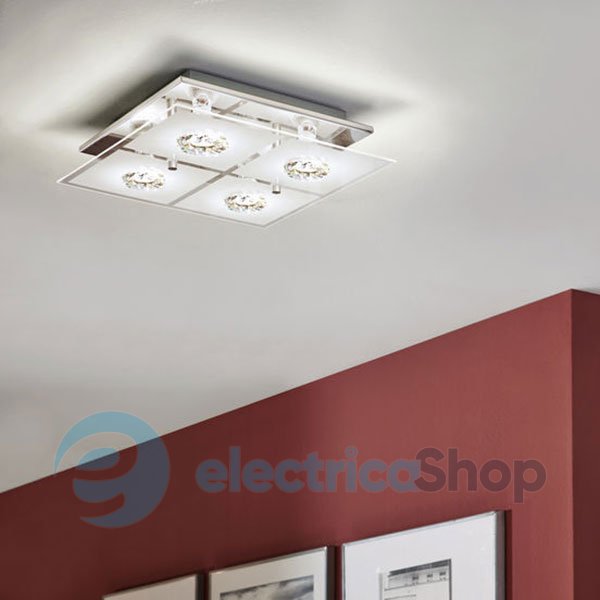 Світильник стельовий Eglo 93783 RONCATO із стильної колекції Eglo буде чудово виглядати в інтер'єрі, оформленому в сучасному стилі. Арматура виготовлена з нержавіючої сталі, плафон - з сатинового скла та кришталю. LED-лампочка в комплекті.