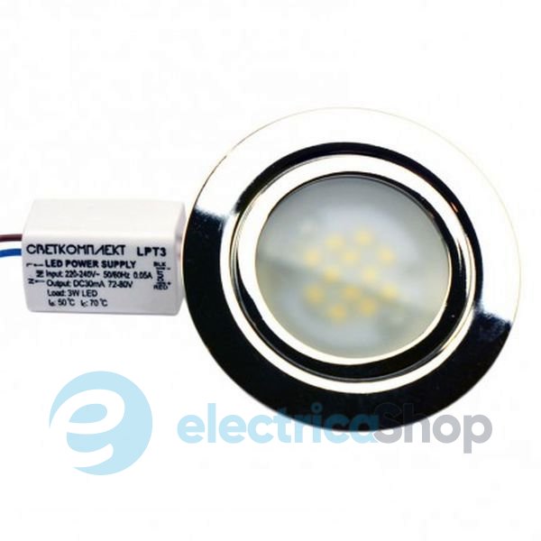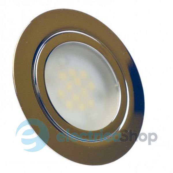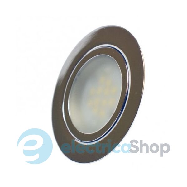 Світлодіодний вбудований світильник 399. Основа з хромованим покриттям, скло матове. Потужність - 3,5 Вт, світловий потік - 220 Lm. Кут розсіювання 100°. Гарантія - 1 рік.