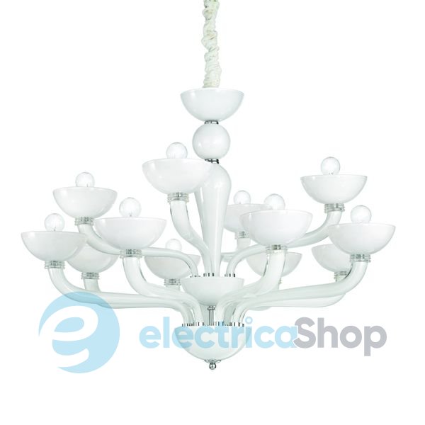Люстра Ideal Lux 94052 CASANOVA ручної роботи з дутого скла чудово підійде для інтер'єру в стилі модерн. Оснащена металевими елементами хромового кольору і білими колбами, які закривають патрони.