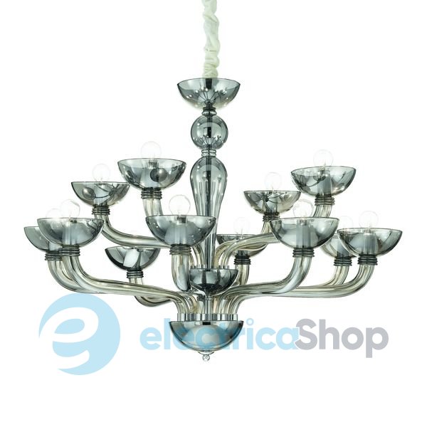Люстра Ideal Lux 95622 CASANOVA ручної роботи з дутого скла чудово підійде для інтер'єру в стилі модерн. Оснащена металевими елементами хромового кольору та чорними колбами, які закривають патрони.