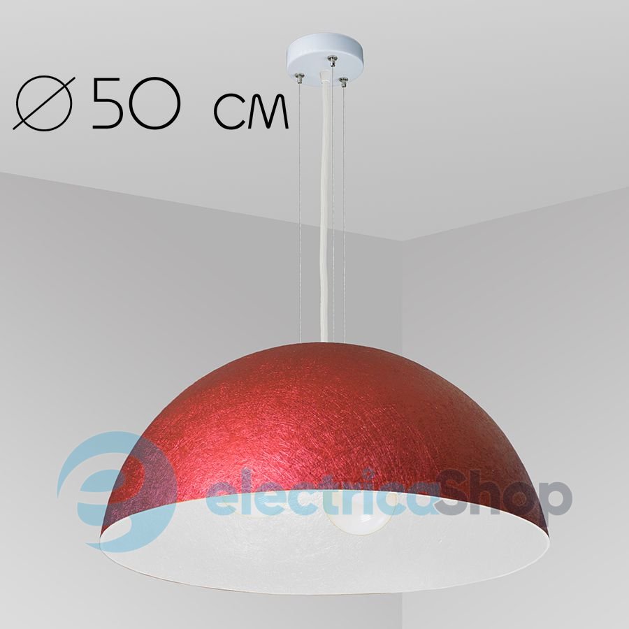 Підвісний світильник ImperiumLight 07350.50.01 червоне вино (металік) / білий дуже добре буде виглядати в кафе, барах, ресторанах, в офісних приміщеннях, а також підкреслить індивідуальність вашого будинку. Лаконічний дизайн і модний колір дає можливість використовувати світильник в сучасних інтер'єрах. Діаметр підвісу - 50 см, висота плафону - 25 см, довжина світильника - 150 см.