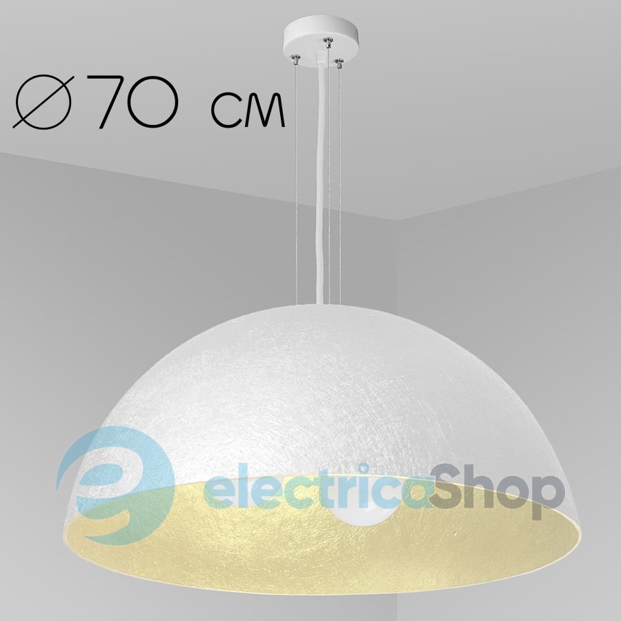 Підвісний світильник ImperiumLight 07370.01.13 D.70 см, білий/перламутр (металік) дуже добре буде виглядати в кафе, барах, ресторанах, в офісних приміщеннях, а також підкреслить індивідуальність вашого будинку. Лаконічний дизайн і модний колір дає можливість використовувати світильник в сучасних інтер'єрах. Діаметр підвісу - 70 см, висота плафону - 35 см, довжина світильника - 165 см.