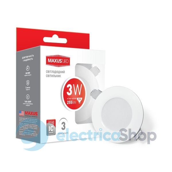 Світлодіодний точковий LED cвітильник SDL mini MAXUS 1-SDL-010-01 - чудова сучасна альтернатива традиційним точковим світильникам з люмінесцентною або галогенною лампою. Для підвищення надійності і стійкості до перепадів напруги в освітлювальному приладі використовується IC-драйвер нового покоління, який був спроектований на базі керуючої мікросхеми, розробленої для LED джерел. Завдяки високому рівню захисту від вологи (IP44), такий світильник можна встановити у ванній та інших приміщеннях з підвищеною вологістю. Підходить для підвісних стель будь-якого типа.