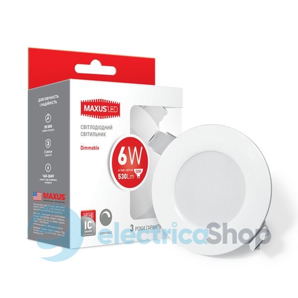 Диміруваний світлодіодний точковий LED cвітильник SDL mini MAXUS 1-SDL-003-01-D - чудова сучасна альтернатива традиційним точковим світильникам з люмінесцентною або галогенною лампою. Для підвищення надійності і стійкості до перепадів напруги в освітлювальному приладі використовується IC-драйвер нового покоління, який був спроектований на базі керуючої мікросхеми, розробленої для LED джерел. Завдяки високому рівню захисту від вологи (IP44), такий світильник можна встановити у ванній та інших приміщеннях з підвищеною вологістю. Підходить для підвісних стель будь-якого типа.